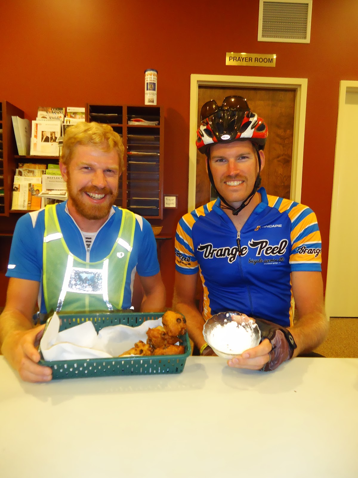 Fellowship CRC in Brighton was our last stop of the day, with a mere 15km to go. This is the home church of Kaitlyn, Sara and Pastor Jake. The folks here put on an awesome spread - including ice cream, Gatorade and oliebollen!